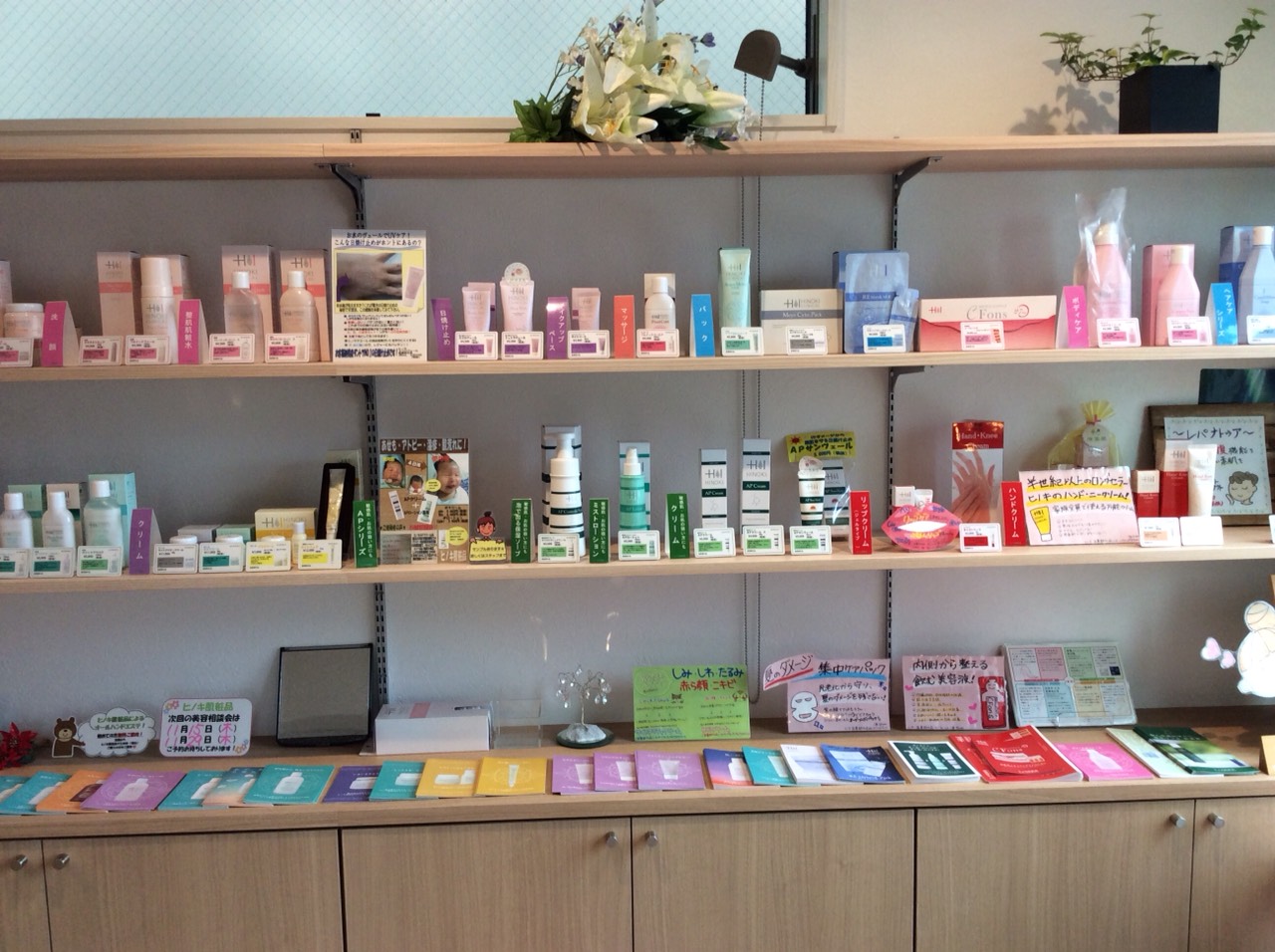 店内には、一般用医薬品、自然薬、化粧品など、たくさんの商品があります。